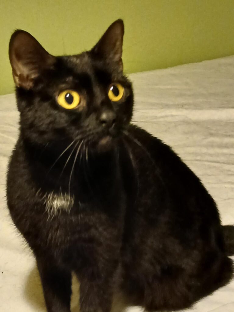 She’s a very friendly young cat, not yet a year old, who has done a wonderful job raising her four kittens.