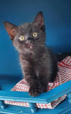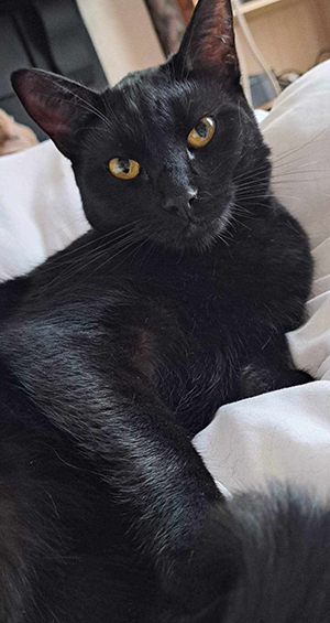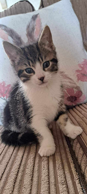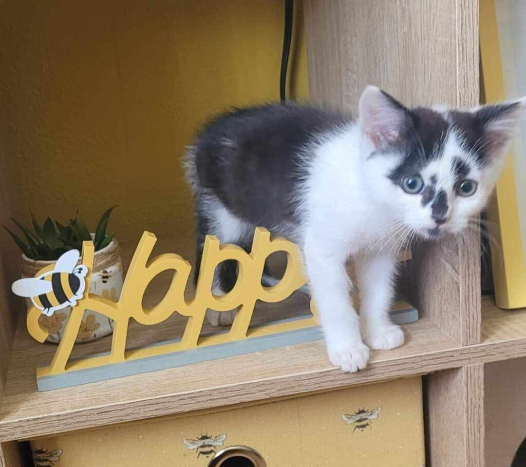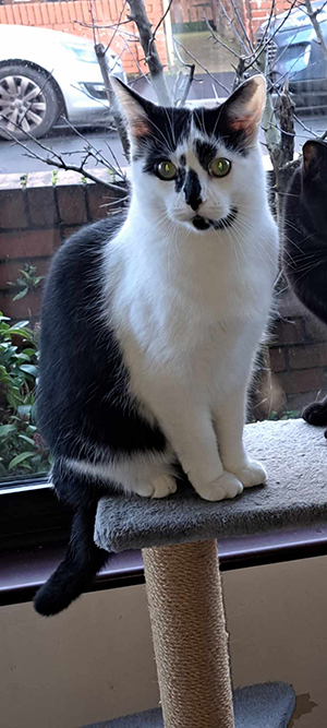 It all started when one of our cats died suddenly at just a year old without warning and we wanted the remaining one to have a friend. I contacted Andrea and Theresa and arranged to view a shy little ferral named moomin (Now Gizmo) we fell in love straight away buuuut my husband also fell in love with a ball of black fluff named Sooty (Now Mr Binx) They both settled great and we thought our cat family was full.