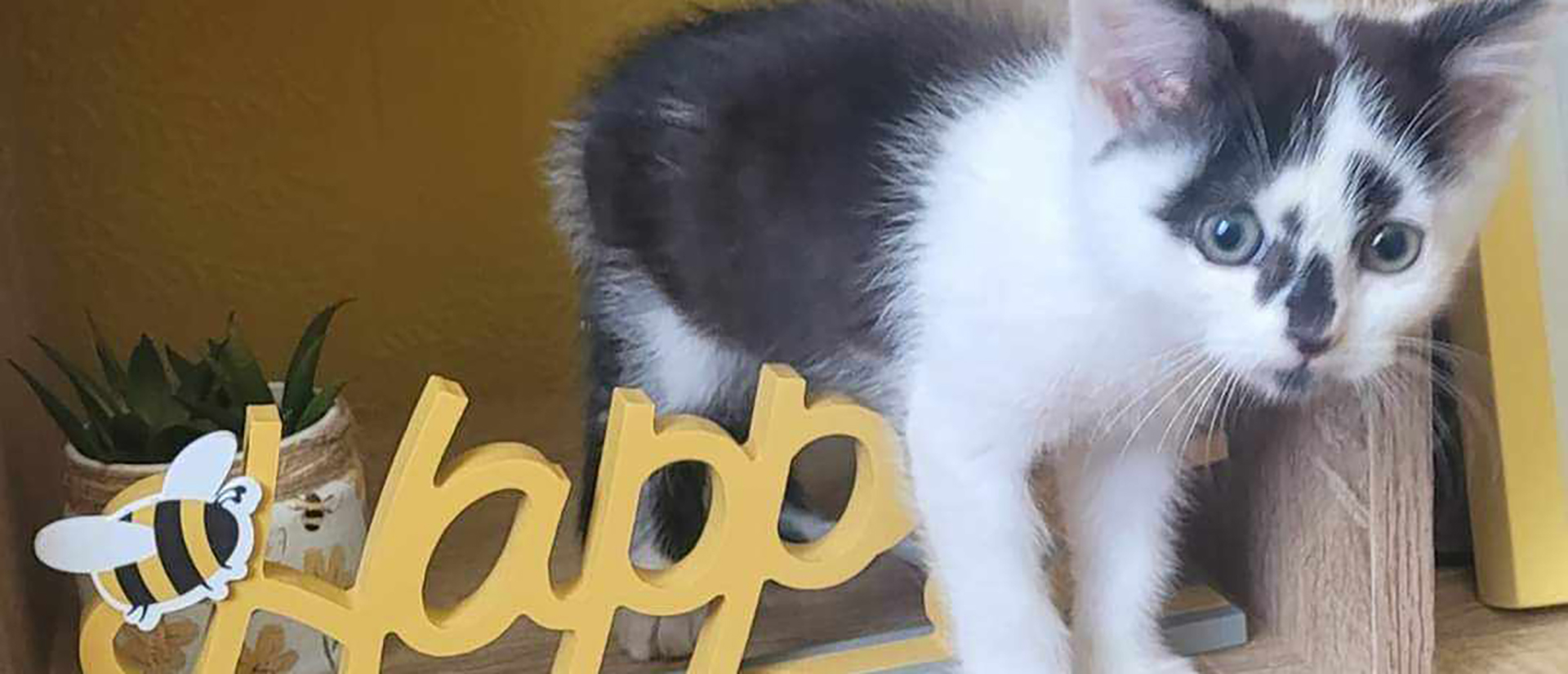 It all started when one of our cats died suddenly at just a year old without warning and we wanted the remaining one to have a friend. I contacted Andrea and Theresa and arranged to view a shy little ferral named moomin (Now Gizmo) we fell in love straight away buuuut my husband also fell in love with a ball of black fluff named Sooty (Now Mr Binx) They both settled great and we thought our cat family was full.